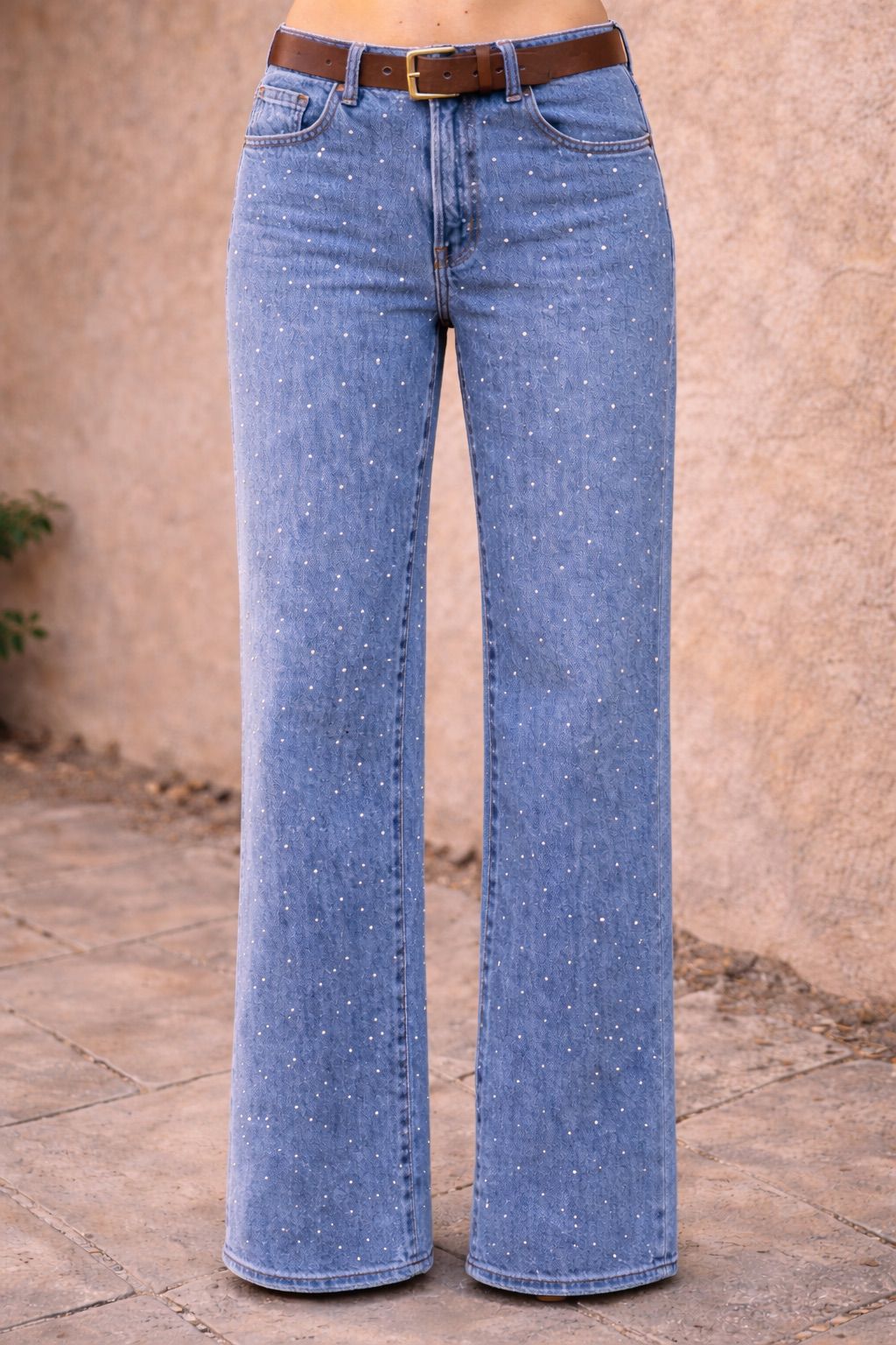 Jeans de pierna ancha con costura frontal y tiro alto