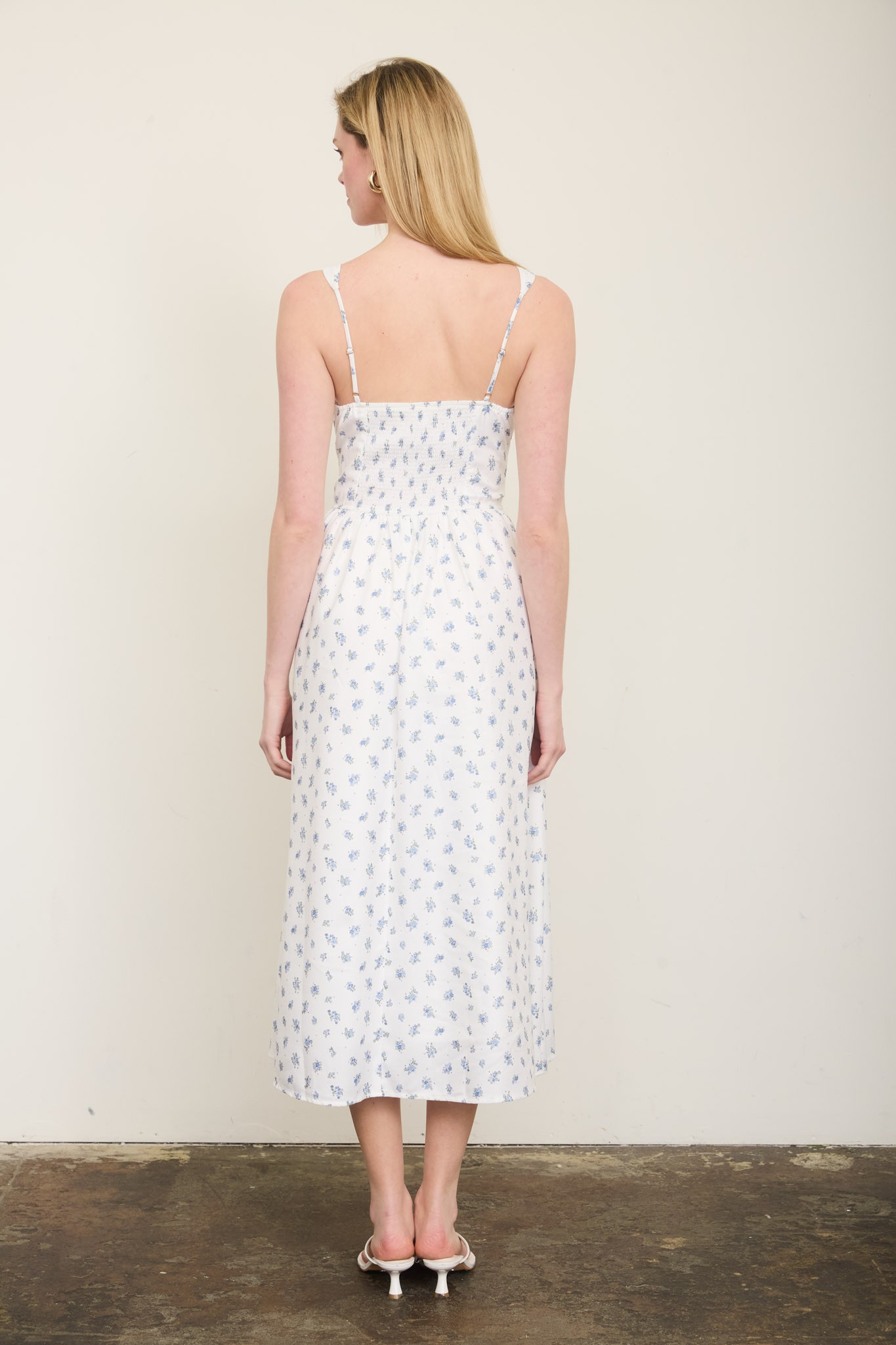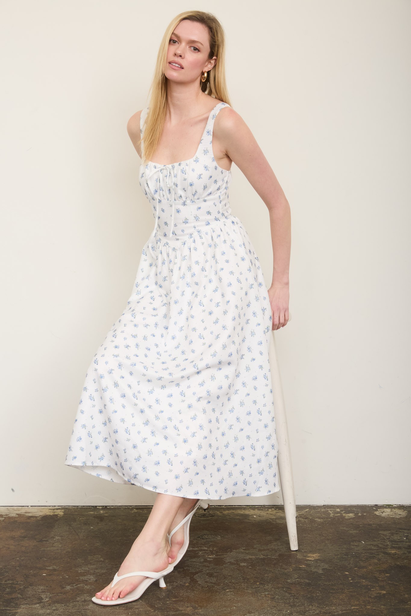 Vestido corsé midi sin mangas con lazo frontal y floral